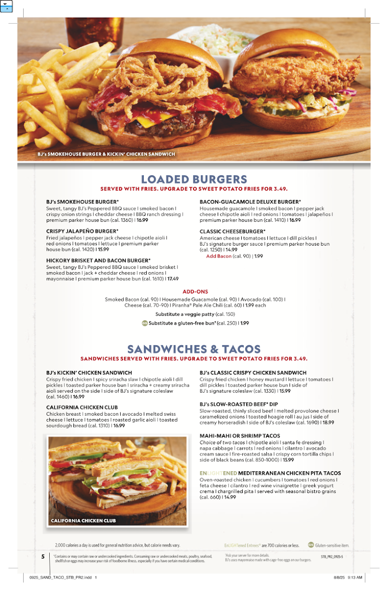 At BJ's Restaurant & Brewhouse, situated in Fairlawn, OH, a culinary journey awaits you. The menu is a delightful fusion of flavors, featuring cherished combos like the slow-roasted tritip paired harmoniously with baby back ribs or shrimp scampi. Each dish is thoughtfully curated, from signature pastas—like the comforting Italian chicken parmigiana—to hearty soups such as the Piranha® Pale Ale chili. The vibrant atmosphere is perfect for both intimate dinners and larger gatherings, making every meal a memorable experience. Guests rave about the pizookies, an indulgent dessert that deserves a spotlight on your table. While there may be moments of inconsistency, especially in service, the overall experience shines with delicious fare and a warm ambience. For a blend of fine dining and casual comfort, BJ's delivers time and again.